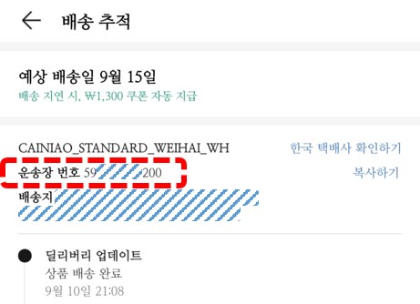 ① 알리홈페이지나 앱을 통해 운송장번호 확인합니다.