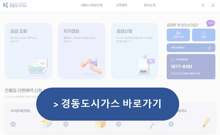 전출입 신청과 요금조회와 기타 여러 가지 서비스(공급신청, 요금납부, 청구서 조회 등)를 신청할 수 있으니 아래 바로가기를 선택하시면 됩니다.